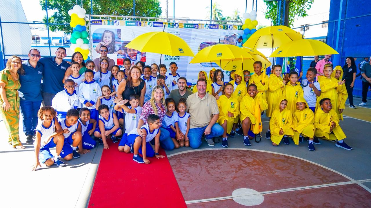 Com a presença do prefeito de Meriti, Léo Vieira, a cerimônia simbólica de entrega foi realizada na Escola Municipal Iracema Campos Fernandes, no bairro Vila Norma. O evento contou ainda com a participação da vice-prefeita, Dra. Letícia Costa, dos secretários municipais Eneila de Lucas (Educação, Ciência e Tecnologia) e Léo Vieira Filho (Habitação, Urbanismo e Iluminação Pública), além de autoridades do Legislativo municipal. A diretora da unidade, Eliane da Costa, e o diretor adjunto, André Luiz Carvalho, também compuseram a mesa.