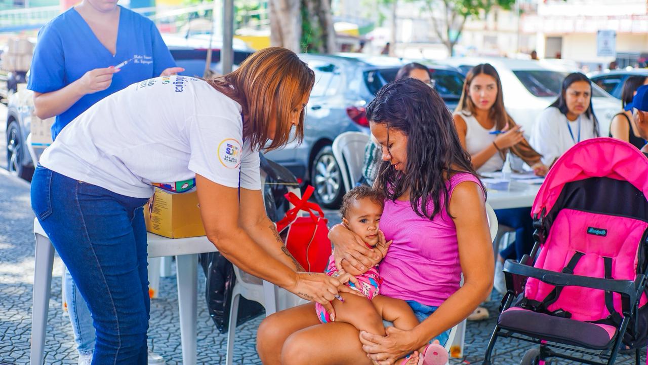 A vendedora Vanessa Corrêa, de 37 anos, levou a filha Luiza, de 11 meses, para receber a dose. “Vacinar sempre para evitar doenças”, relatou.