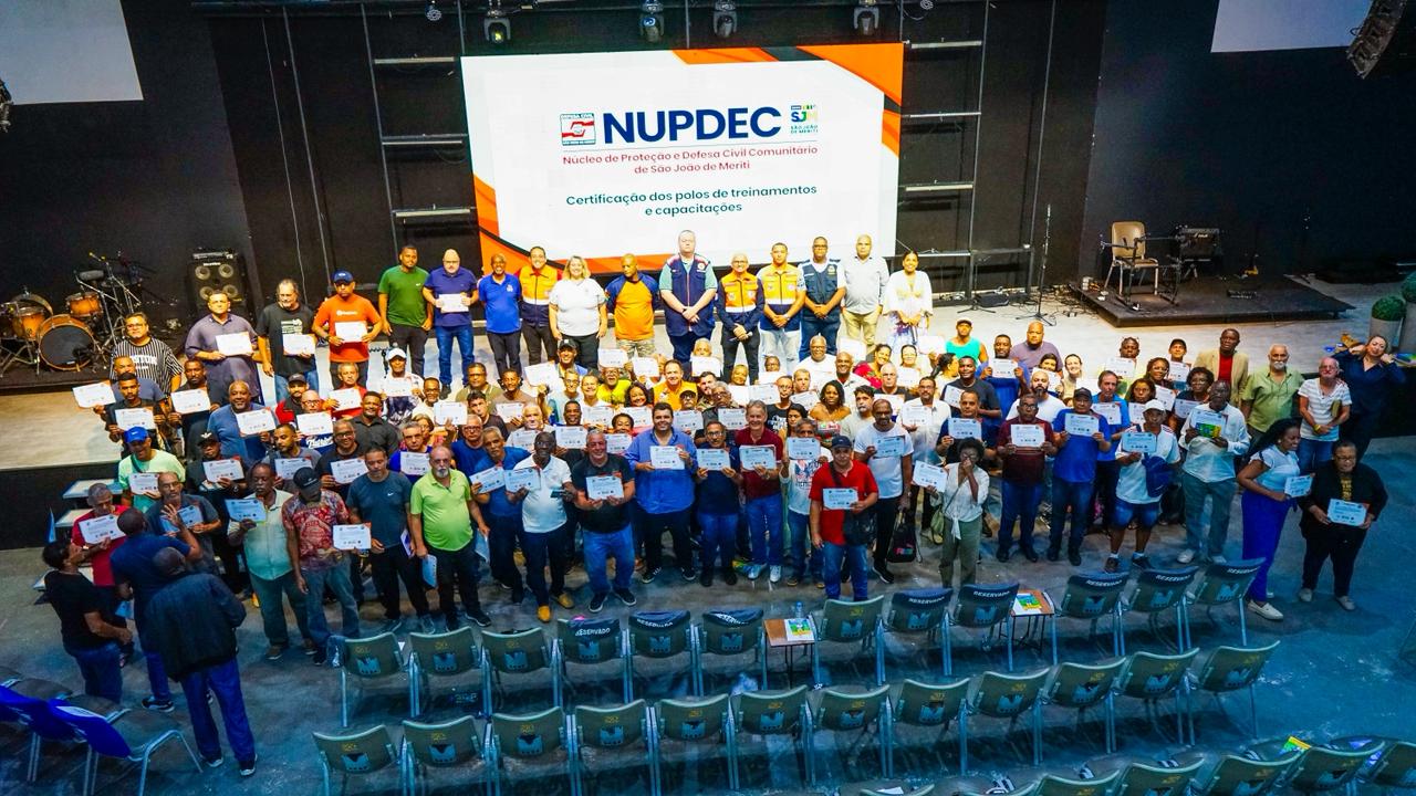 A Prefeitura de São João de Meriti, através da Secretaria Municipal de Resiliência Urbana, Proteção e Defesa Civil, promoveu na segunda-feira (09-03), na Igreja Cara de Leão Projeto Vida Nova, em Vilar dos Teles, a cerimônia de entrega dos certificados aos concluintes do curso de Formação de Voluntários e Capacitação de Servidores do Núcleo de Proteção e Defesa Civil Comunitário (Nupdec).